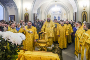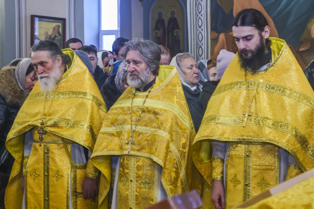 Его Высокопреосвященству сослужили клирики монастыря: митрофорный протоиерей Михаил Ильинский, протоиерей Александр Сарычев, протоиерей Иоанн Каширский, священник Михаил Замкивский, диакон Павел Попов, клирики Спасо-Преображенского кафедрального собора города Тамбова протоиерей Андрей Махоренко, диакон Константин Полозов и диакон Павел Олейник, а также настоятель храма в честь вмч. Димитрия Солунского с. Керша Бондарского муниципального округа Тамбовской области протоиерей Андрей Финаев.