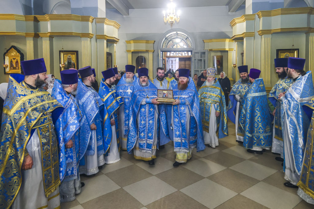 Перед началом Божественной литургии святыня была торжественно принесена в Спасо-Преображенский кафедральный собор в сопровождении сонма духовенства Тамбовской епархии и многочисленных верующих. По благословению главы Тамбовской митрополии митрополита Тамбовского и Рассказовского Феодосия Божественную литургию возглавил митрофорный протоиерей Владимир Кленин, которому сослужили клирики Тамбовской епархии.