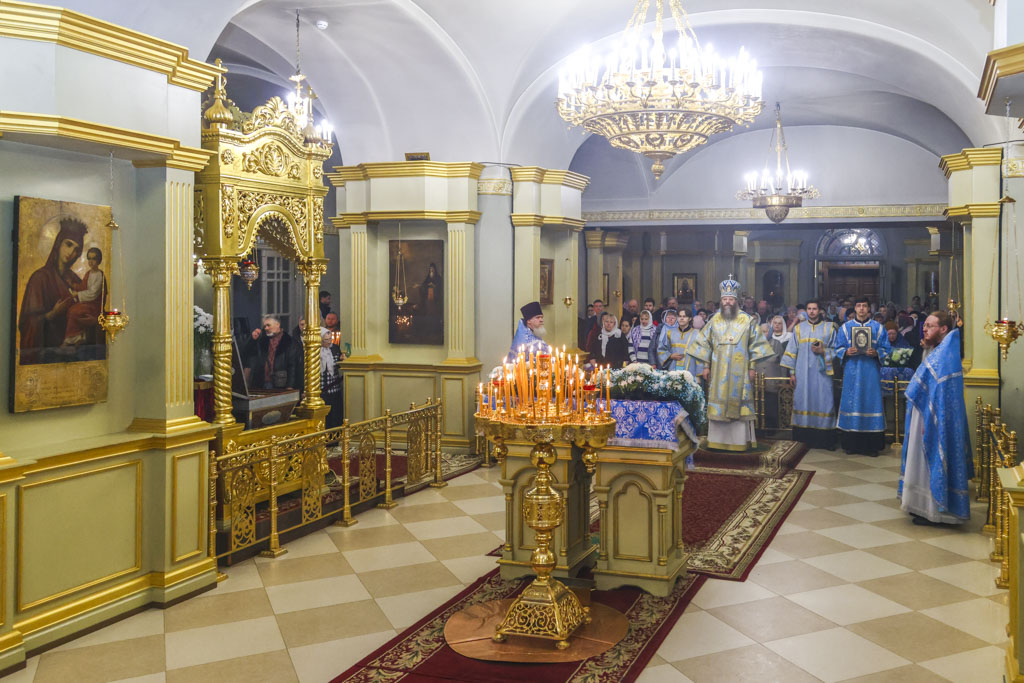 По прибытии в храм перед началом богослужения глава Тамбовской митрополии поклонился ковчегу с частицей Пояса Пресвятой Богородицы и мощам святителя Питирима, епископа Тамбовского.