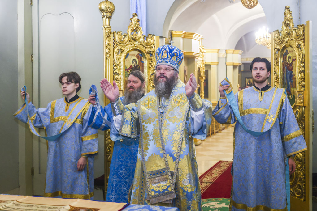 Его Высокопреосвященству сослужили клирики собора: протоиерей Андрей Махоренко, протоиерей Игорь Груданов, протоирей Виктор Лисюнин, священник Даниил Лопухов, священник Димитрий Шелковников, диакон Константин Полозов, диакон Алексий Ермаков и диакон Павел Олейник.