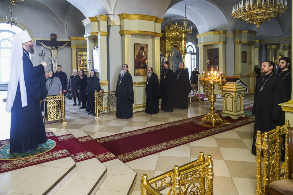 24 февраля, во вторник первой седмицы Великого поста, митрополит Тамбовский и Рассказовский Феодосий молился за уставным богослужением в нижнем храме Спасо-Преображенского кафедрального собора города Тамбова.