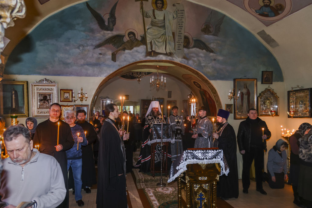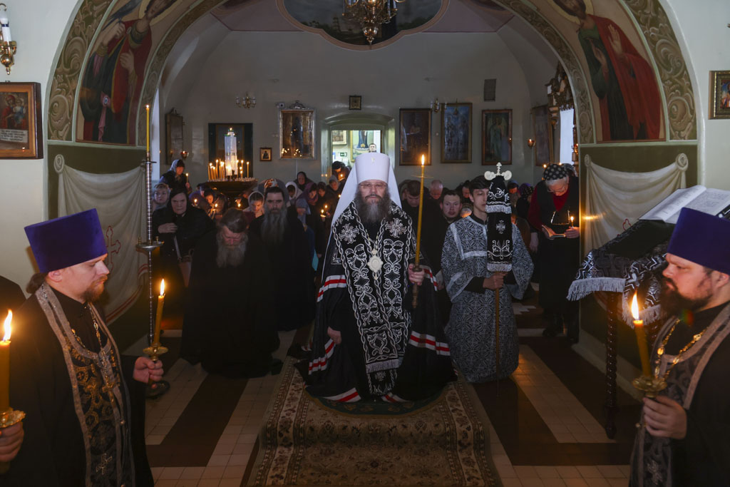 За богослужением был прочитан Великий покаянный канон преподобного Андрея Критского.