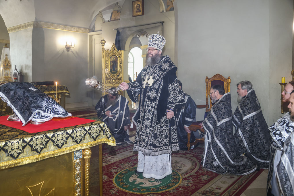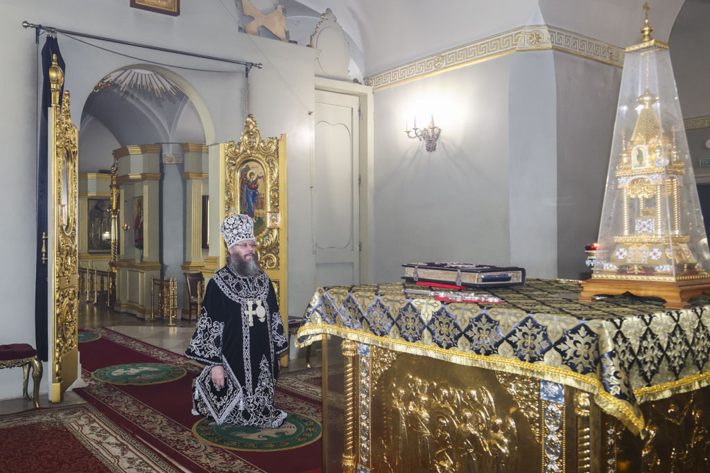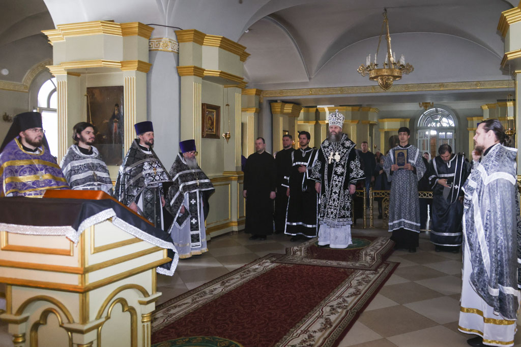 Его Высокопреосвященству сослужили клирики собора: протоиерей Георгий Неретин, протоиерей Андрей Махоренко, протоиерей Игорь Груданов, протоирей Виктор Лисюнин, священник Александр Неплюев, священник Павел Периков, священник Даниил Лопухов, священник Димитрий Шелковников, диакон Константин Полозов, диакон Антоний Дик, диакон Алексий Ермаков, диакон Павел Олейник, а также насельник Казанского мужского монастыря г. Тамбова иеромонах Зосима (Клинков).