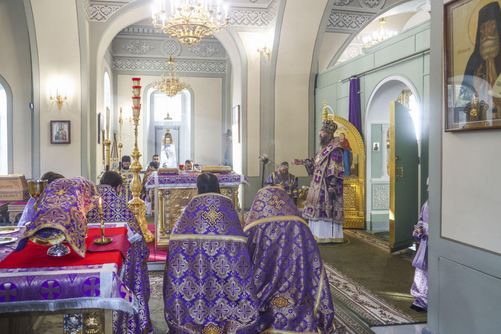Его Высокопреосвященству сослужили митрофорный протоиерей Михаил Ильинский, протоиерей Александр Сарычев, протоиерей Андрей Махоренко, протоиерей Иоанн Каширский, священник Михаил Замкивский, иеромонах Зосима (Клинков), священник Алексий Ермаков, священник Павел Олейник, диакон Константин Полозов и диакон Павел Попов.