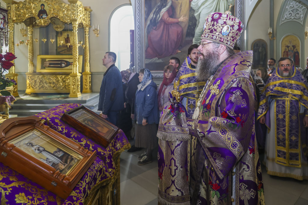 По прибытии в храм перед началом богослужения глава Тамбовской митрополии поклонился мощам преподобной Марфы Тамбовского.