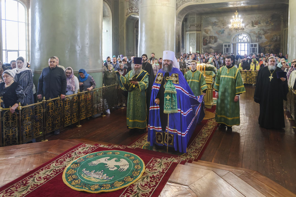 В завершение Божественной литургии было совершено славление празднику, после чего глава Тамбовской митрополии обратился к верующим с архипастырским словом и поздравлением.