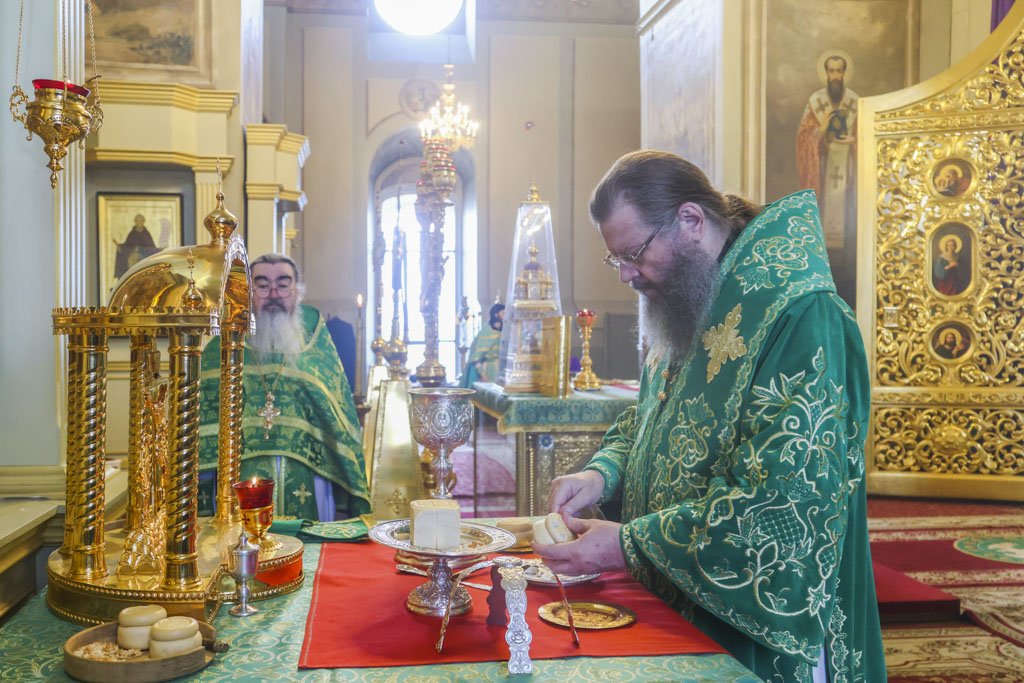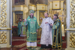 Его Высокопреосвященству сослужили клирики собора: ключарь протоиерей Георгий Неретин, протоиерей Андрей Махоренко, протоиерей Виктор Лисюнин, священник Димитрий Шелковников, священник Павел Олейник, диакон Константин Полозов.